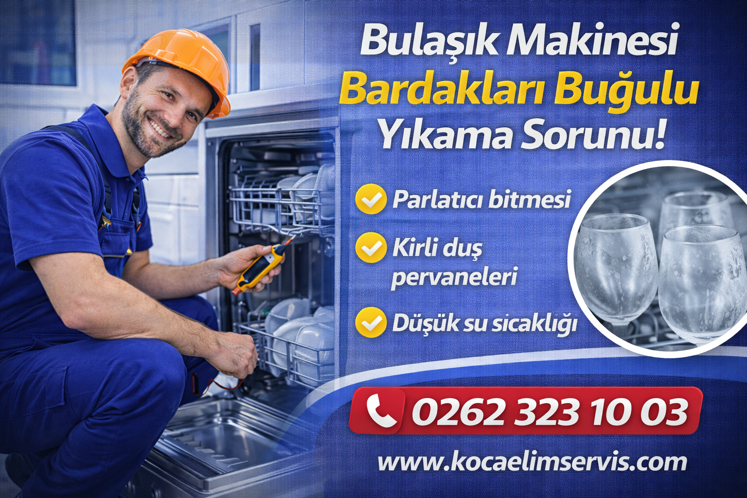 Buğulu görünüm bazen sadece bardak üzerinde kalan ince mineral tabakasıdır ve doğru ayarlarla tamamen düzelebilir. Ancak bazı durumlarda, özellikle uzun süre yanlış deterjan/parlatıcı kullanımı ve yüksek ısıya maruz kalma nedeniyle cam yüzeyde kalıcı matlaşma (aşınma) oluşabilir. Kocaeli bölgesinde cam/bardak şikayetlerinde, ayar optimizasyonu ile çözüm alınamayan durumlarda kurutma ve su sertliği sistemi de kontrol edilmelidir. Yerinde kontrol ve doğru yönlendirme için Kocaeli Servis üzerinden servis kaydı oluşturabilirsiniz.